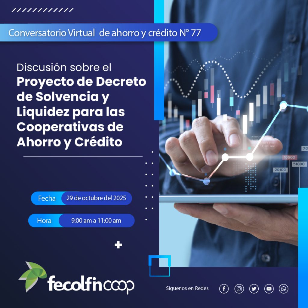 | En el marco de los recientes ajustes propuestos por la Unidad de Regulación Financiera (URF) al Decreto de Solvencia y Liquidez, Fecolfin, en alianza con VCR Group, invita a sus entidades afiliadas a participar del conversatorio virtual de ahorro y crédito No. 77, un espacio de actualización y análisis sobre los cambios más relevantes que impactarán la gestión financiera, de riesgos y de gobierno en las cooperativas de ahorro y crédito.El encuentro tiene como propósito brindar herramientas prácticas para la comprensión e implementación del nuevo esquema regulatorio, fortaleciendo las capacidades de las cooperativas frente a los retos que implican los cambios en la gestión de riesgos de mercado, liquidez y tasa de interés, así como en el cálculo de la relación de solvencia.Temas principales Ajustes al marco regulatorio y régimen de transición. Gestión de liquidez, mercado y tasa de interés. Nuevos criterios para la relación de solvencia y el apalancamiento. Reforzamiento del SARO, SARM y control interno. 📅 Fecha: 29 de octubre del 2025 🕘 Hora: 9:00 a.m. a 11:00 a.m. 💻 Modalidad: Virtual (el enlace se enviará a los inscritos) La participación requiere inscripción previa. Una vez registrado, recibirás el enlace de acceso al correo electrónico proporcionado. 📌 Importante: Este evento es exclusivo para asociados de Fecolfin. Por ello, te pedimos ingresar con tu nombre completo y el nombre de la entidad que representas, para facilitar el proceso de identificación. Para más información, contáctanos al correo: 📧 auxiliar@fecolfin.coop o al 📱 316 023 9942. |