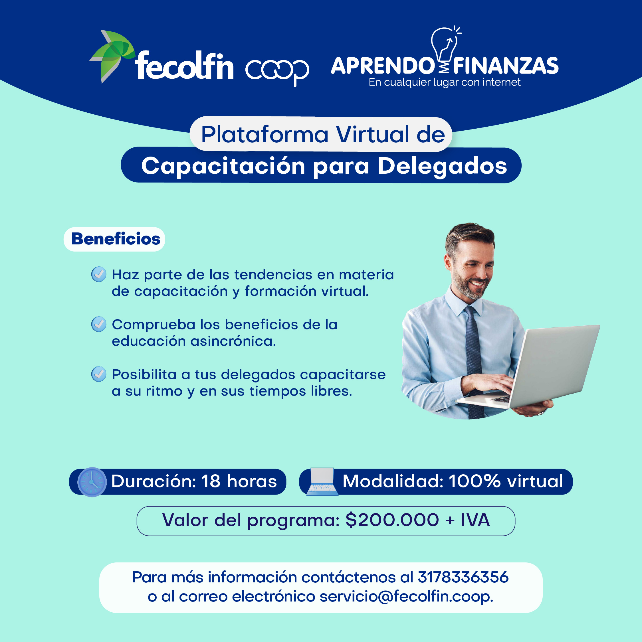 Fecolfin en alianza con Aprendo Finanzas presentan la Plataforma virtual de capacitación para delegados con este programa las cooperativas podrán capacitar a sus nuevos Consejos de Administración con los beneficios de la educación asincrónica.