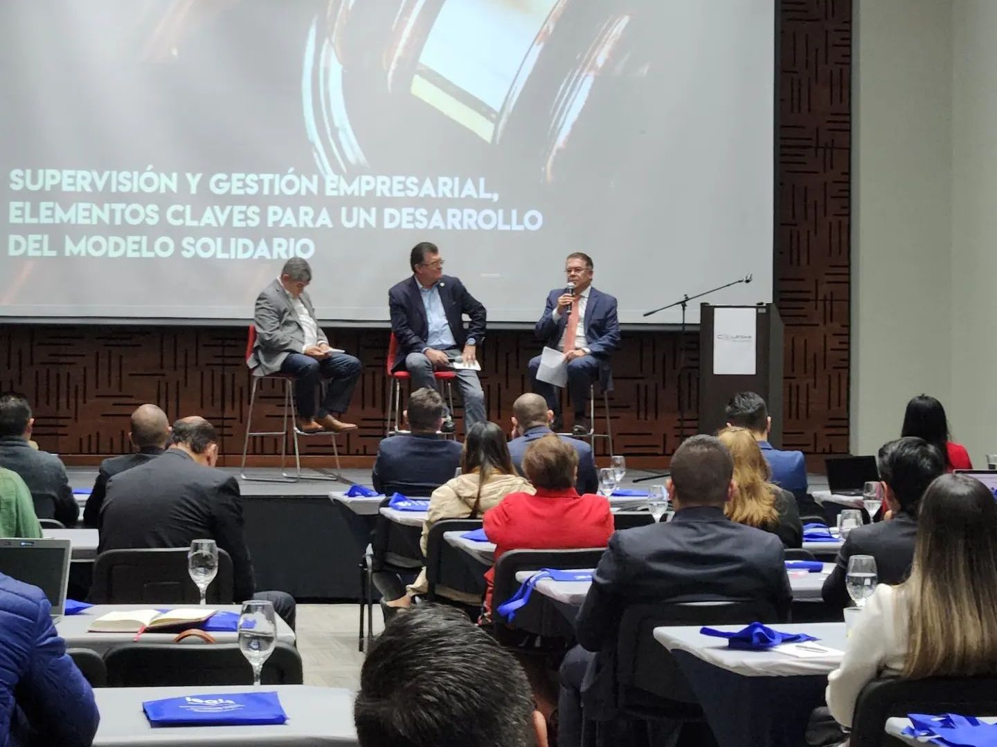 Enrique Valderrama Jaramillo, presidente ejecutivo de Fecolfin participó en un panel en compañía de Ricardo Lozano Pardo, anterior superintendente de la Economía Solidaria, en este espacio moderado por Carlos Mario Zuluaga Pérez, los panelistas hablaron de las reflexiones y dialogo como un elemento experiencial para consolidar una regulación basada en el modelo cooperativo y solidario.Así mismo, durante el encuentro se abordaron temas tales como: el análisis del panorama actual de las entidades de la economía solidaria visto desde la supervisión, la supervisión colaborativa desde las perspectivas del Estado; algunas experiencias y propuestas del sector cooperativo hacía una supervisión que articule acuerdos y apoye el fortalecimiento del sector.En este evento participaron además de los representantes de Fecolfin, directivos de entidades afiliadas a la federación como Edison Castro, gerente de Canapro, Juan Pablo Vélez Góez, gerente de Febor, entre otros. |