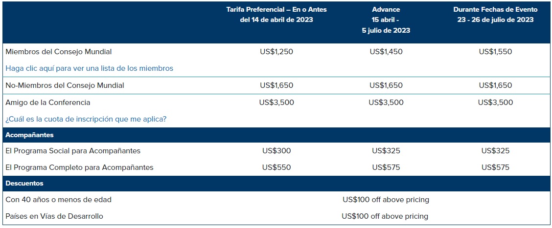 Fecolfin propone a sus asociados y aliados una propuesta económica para asistir a la Conferencia Mundial de WOCCU. La propuesta incluye un paquete completo que cubre todos los aspectos de su viaje, como el tiquete aéreo ida y regreso desde Colombia a Vancouver con conexión en Toronto, alojamiento por 5 noches y 6 días en Vancouver con impuestos y traslados privados de llegada y salida en aeropuertos, asistencia médica internacional y tramitación de visado canadiense para los participantes que lo requieran. El precio por persona en una habitación sencilla es de US4.940 y ofrecemos un precio por persona en acomodación de habitación doble de US3.900. Cabe destacar que la inscripción al evento no está incluida en el paquete, pero con un descuento de pago antes del 05 de julio, el costo es de US1.250 por persona; después de esa fecha, el costo será de US1.450. La inscripción al evento incluye alimentación durante el evento y puede consultarse en la página web de WOCCU: https://www.wcuc.org/ |