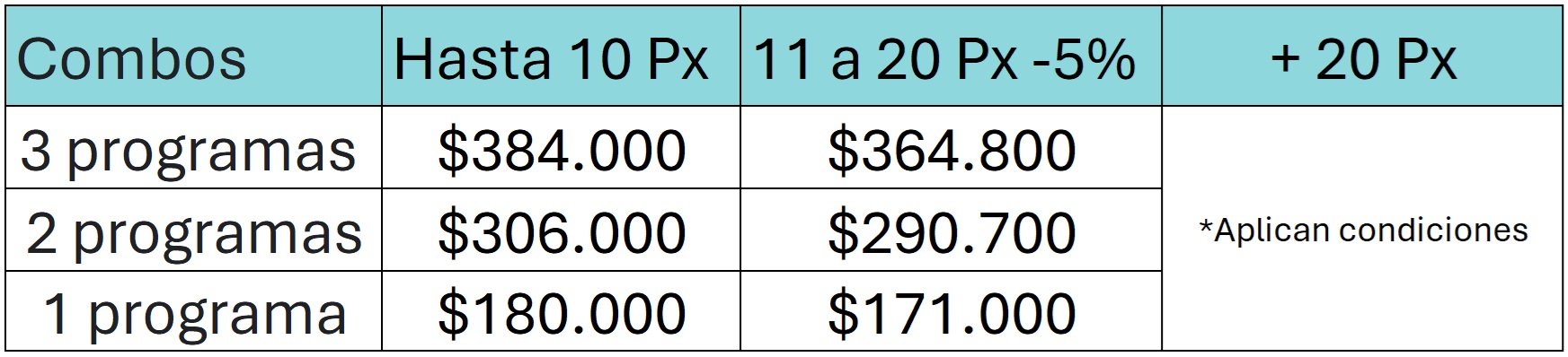 *Para grupos superiores a 20 participantes por entidad se dará un precio especial.