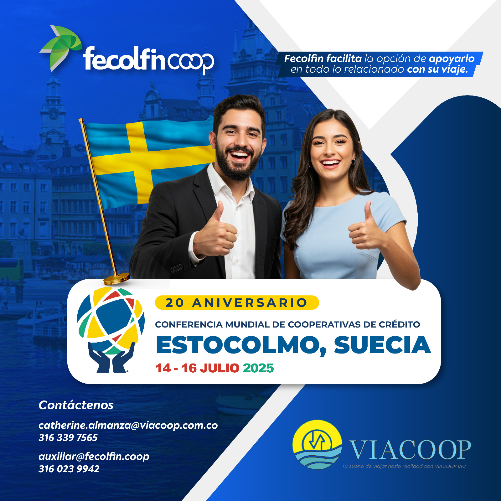 Desde la Junta Directiva y la administración de Fecolfin, tenemos el gusto de invitarle a participar en uno de los eventos más relevantes del sector a nivel mundial: La Conferencia Mundial de Cooperativas de Ahorro y Crédito 2025, organizada por el Consejo Mundial de Cooperativas de Ahorro y Crédito (WOCCU).Este año, la ciudad de Estocolmo, Suecia, será el escenario que reunirá a líderes, expertos y profesionales del cooperativismo financiero global entre el lunes 14 y el miércoles 16 de julio.La conferencia es el espacio ideal para acceder a conocimiento de vanguardia, identificar oportunidades estratégicas, compartir buenas prácticas, impulsar la innovación y ampliar su red de contactos con los principales actores del sector a nivel mundial. Conferencistas de diferentes partes del mundo abordarán los desafíos y tendencias que marcarán el futuro de nuestras cooperativas.WOCCU extiende esta invitación a todos los profesionales del sector, sin importar su cargo o trayectoria, con tarifas especiales para quienes tengan 40 años o menos. Para más información e inscripciones, visite: 👉 www.wcuc.org
