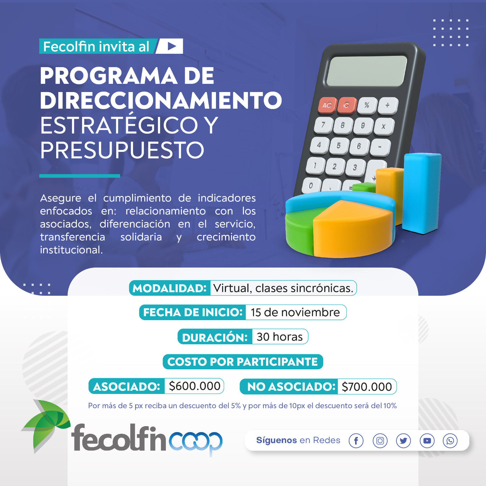 Inscríbase ya y aproveche los descuentos que tenemos para su cooperativa Fecolfin se complace en invitarlos a participar del programa virtual de capacitación «direccionamiento estratégico y presupuesto» bajo la metodología “aprender haciendo”, de esta manera podrá conocer las herramientas teórico-prácticas que les permitan fortalecer y ajustar su direccionamiento estratégico y presupuesto, asegurando el cumplimiento de los indicadores. […]